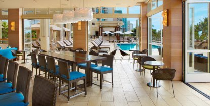 ワイキキで人気のレストランがお部屋のすぐそばに。パシフィックリム料理がお気に入りのお客様には「ジャペンゴ」をお勧めします。ハワイ近海で獲れた新鮮な海の幸なら「ショア」へ。手軽なお食事やカクテルならプールサイドレストラン&バーの「スイム」へ。夕陽を眺めたり、美しいハワイの空の下でライブを楽しむこともできます。
