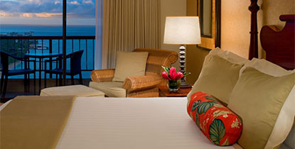 プライベートラナイから目の前に広がる一面の太平洋を心ゆくまでご堪能ください。広々としたお部屋には、ダブルサイズのハイアットグランドベッドTMを2台設置。デラックスバスルームにはナ ホオラ スパのオリジナルアメニティをご用意しています。
